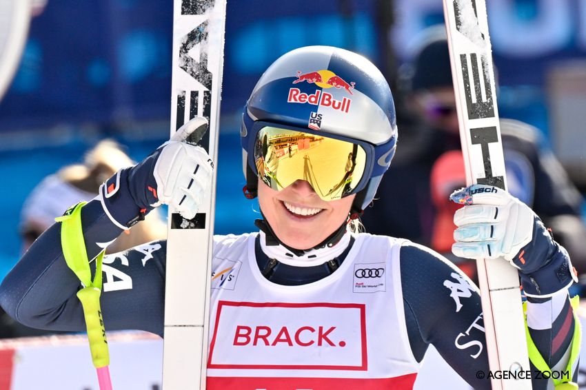 À l’arrivée, le verdict du chronomètre a été sans appel : la championne américaine relègue ses principales rivales à bonne distance. Magdalena Egger termine à 0’’98, Mirjam Puchner à 1’’16, Sofia Goggia à 1’’31 et l’Allemande Emma Aicher à 1’’41.
