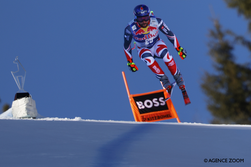 Maxence Muzaton lors de l’un des deux entraînements sur la Streif à Kitzbühel – Photo copyright Agence Zoom/Alexis Boichard