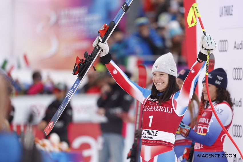 Romane Miradoli 3e du Super-G de La Thuile en mars dernier – Photo copyright Agence Zoom/Christophe Pallot