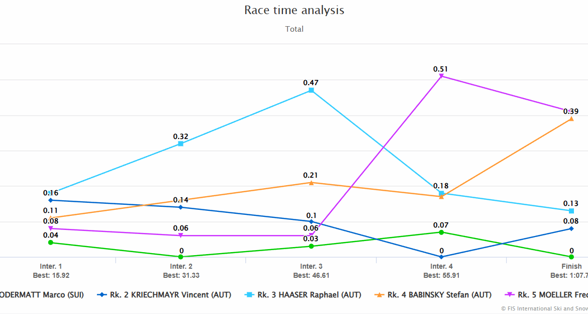 Le classement s’est ensuite figé derrière Odermatt, avec un trio autrichien composé de Vincent Kriechmayr, Raphael Haaser et Stefan Babinsky.